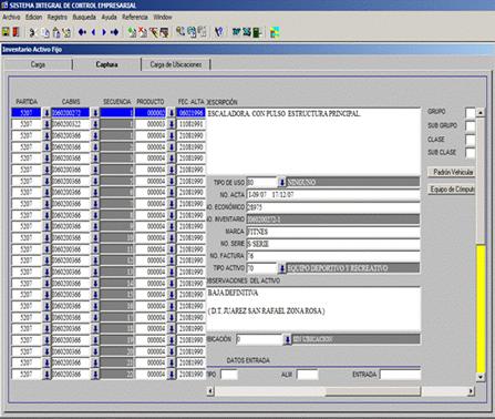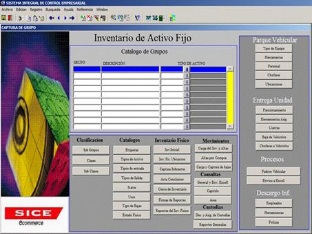 El sistema maneja los siguientes conceptos de operación · Inventario Físico : con control de código de barras, conteos, cedulas de diferencias, pólizas contables y reportes al final se traspasa como inventario físico · Inventario Libros : Es igual al inventario inicial - salidas´’ entradas · Entradas : Pueden ser por diferentes conceptos ( compra · Salidas · Inventario Final · Estadísticas y Reportes Controla Inventarios (Activos Fijos) dese la solicitud de compra hasta la entrega del bien al usuario final , generando la custodia del bien, código de barras del mismo y si se trata de vehículos ( camiones, coches, Motos etc.) le genera un control de mantenimientos preventivos o correctivos , así mismo controla lo referente a las verificaciones