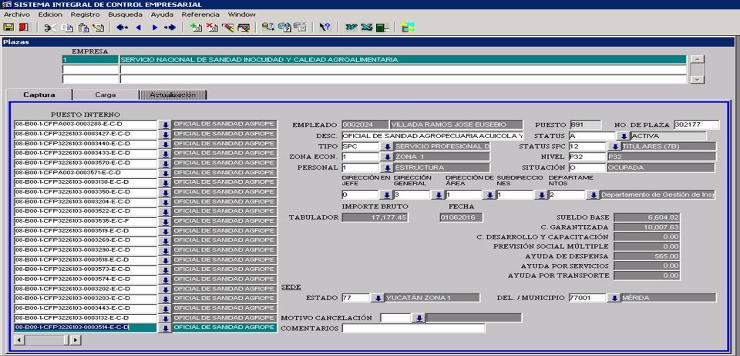 · Conocer las plazas de acuerdo a sus status (ocupada, vacante, cancelada)