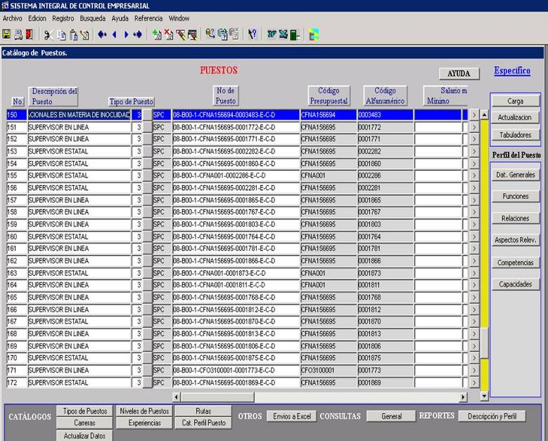 Transparencia Total. Un mejor Gobierno nace de una buena administración y solución de los problemas existentes. · El Sistema es 100% auditable · Permite auditorias de plazas y niveles históricos · Mantiene el control de todos y cada uno de los empleados que pasen por puesto, plaza y nivel · Controla lo referente a la organización de su dependencia con consultas tipo drill drawn · Le permite cualquier movimiento de plazas, puesto y empleado · Calcula el Presupuesto Inicial por partida presupuestal y centro de trabajo |